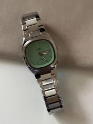 Minimalist Sage Green Dial Watch for Women Square Face Silver Bracelet Watch