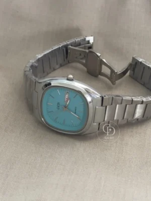 Dainty Blue Mother of Pearl Dial Watch Silver Chain Bracelet Watch for Women