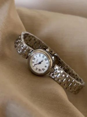 Dainty Round Face Watch Roman Numerial Dial Silver Bracelet Watch for Women
