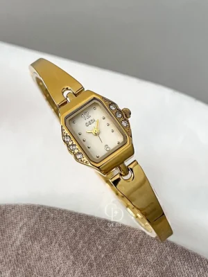 GEDI Elegant Gold Slim Wristwatch Square Face Crystal Accented Small Watch for Women