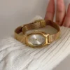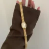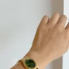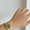 Exquisite Steel Band Ladies Watch, featuring a stunning green or white dial complemented by a gold strap that resembles a stylish bracelet when worn. The green option exudes vintage elegance, while the white offers a minimalist charm. A perfect accessory for any occasion.