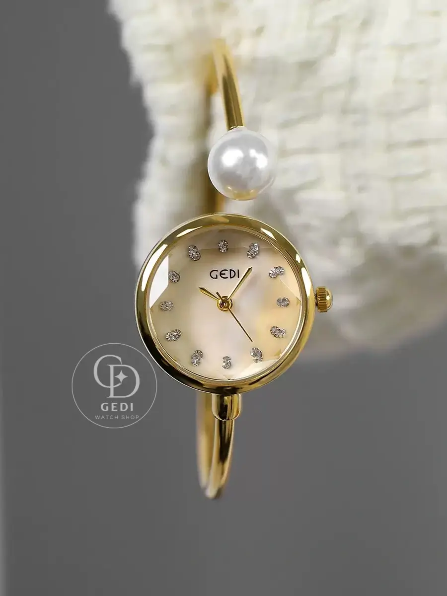 GEDI Dainty Mother of Pearl Dial Watch Minimalist Pearl Bangle Watch for Women