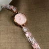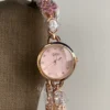 Dainty Pink Zircon Cherry Blossom Gold Round Face Watch