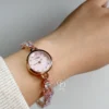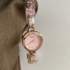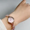 Dainty Sakura Pink Zircon Round Face Gold Bracelet Watch