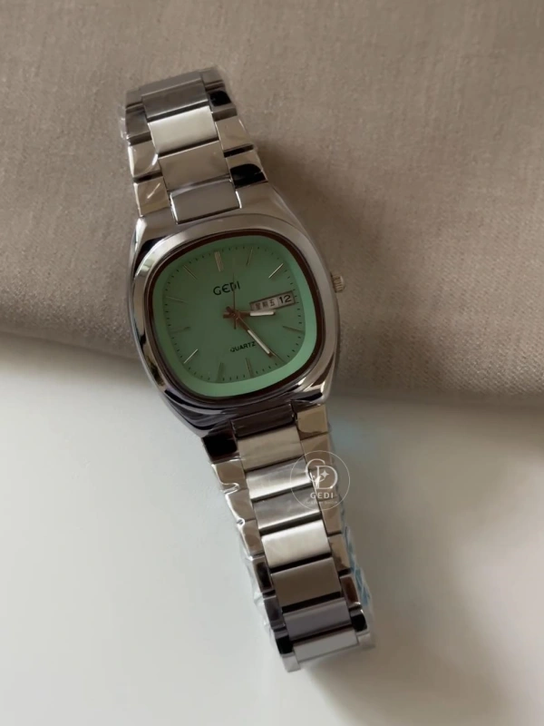 Fresh, modern, and effortlessly elegant — this sage green dial women’s watch brings a subtle pop of color to any outfit. Designed with a sleek square face and polished silver bracelet, it perfectly blends minimalist sophistication with everyday wearability. The soft green dial catches the light beautifully, adding a refined charm that complements both casual and formal looks. Whether paired with a crisp shirt, a cozy knit, or a flowy dress, this versatile women’s watch enhances your style with calm, timeless elegance.