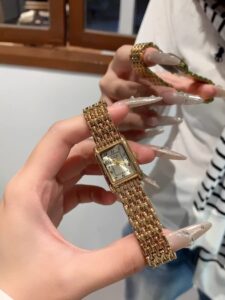 Add a touch of timeless elegance with this vintage-inspired gold ladies’ watch, designed with a sleek rectangular face and a warm gold-tone dial. The minimalist layout and retro charm make it a versatile accessory for both casual and dressy outfits. Paired with a matching golden strap, it offers a refined, feminine silhouette that blends classic sophistication with modern simplicity—perfect for everyday wear or as a thoughtful gift for her.