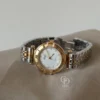 This elegant two-tone ladies watch features a gold gradient bezel with Roman numeral hour markers and a smooth white dial for a refined, timeless look. The silver and gold stainless steel bracelet adds a touch of luxury, blending modern sophistication with vintage-inspired charm. Perfect for daily wear or special occasions, this versatile design pairs beautifully with both casual and formal outfits.