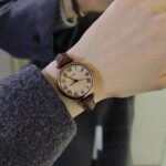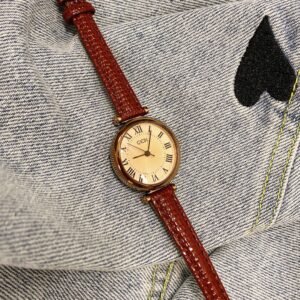 This watch features a classic brown leather strap paired with a soft beige round dial. Its vintage-inspired design offers a perfect balance of simplicity and elegance, with clean lines and a minimalist aesthetic. A refined accessory for those who appreciate understated style with a touch of retro sophistication.