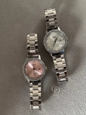 Elegant Pink/Silver Dial Ladies Watch Round Face Silver Bracelet Watch